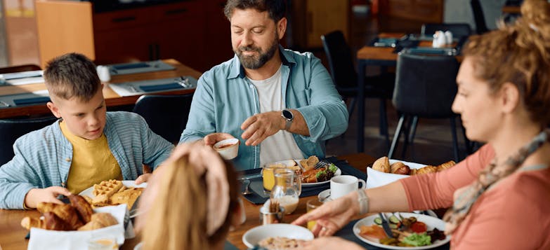 Deal: Two kids under 16 eat breakfast free with every paying adult breakfast.
