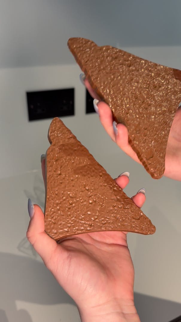 You’ve got the classic thin chocolate shell you expect from an Easter egg, but the “bread” layers are much thicker. Hotel Chocolat 3D scanned real wholemeal bread to make authentic moulds for the chocolate bread slices.