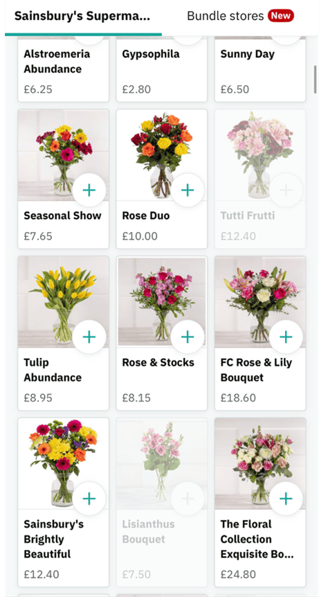 I had a quick look on Deliveroo at flowers from supermarkets near me, including Morrisons, Co-op and Sainsbury's. I managed to find a few reasonably priced bouquets, with simple bunches starting at around £7 and some slightly bigger arrangements closer to £12-£20 depending on what was available.
