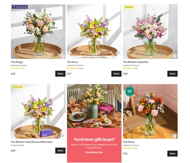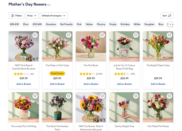Availability can depend on where you live and how close it is to Mothering Sunday, so it is usually worth checking a couple of different sites rather than sticking with the first one you see.