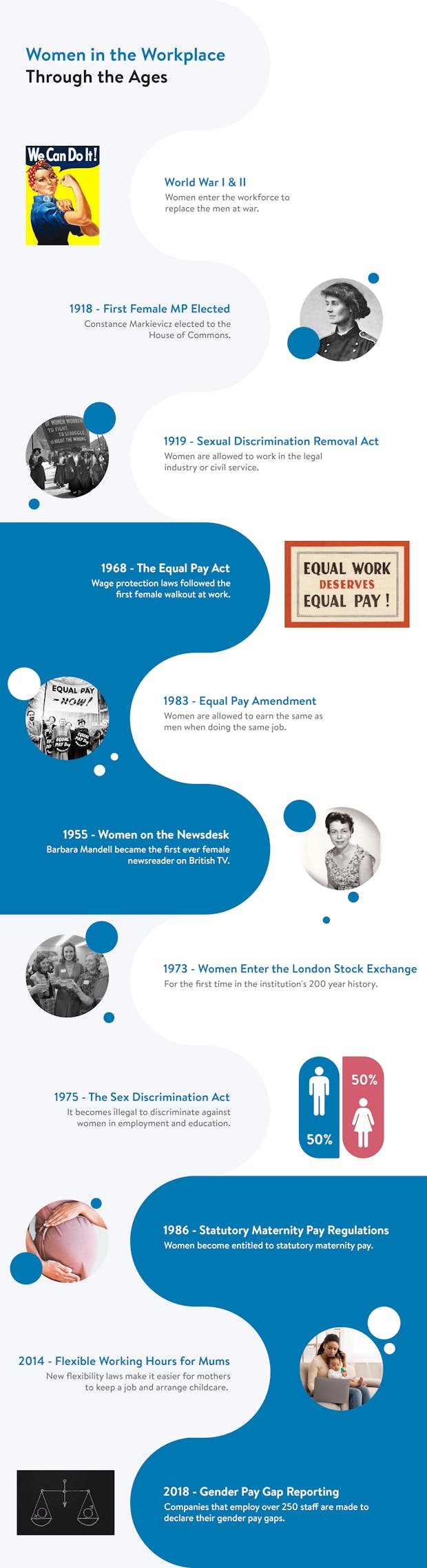 Not even 100 years ago, women were forbidden from opening their own bank account. They were not allowed to own a house, serve on a jury or even drink in a pub without the company of a man. It may come as no surprise that the treatment of women in the workplace has been a similar story in years gone by.